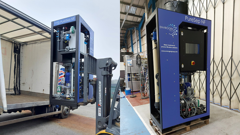 Nanofiltration membranes for water treatment: An Envirogen PureSep NF mobile skid testing system is being unloaded at a customer for on-site water recycling trials